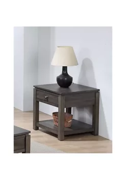The Hamptons Collection 24.5” Gray Square Wooden End Table with Drawer and Shelf