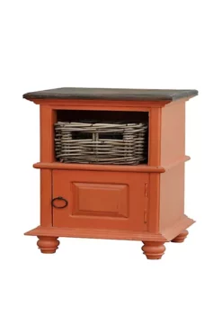 The Hamptons Collection 26.5” Orange Distressed Cottage End Table with Basket