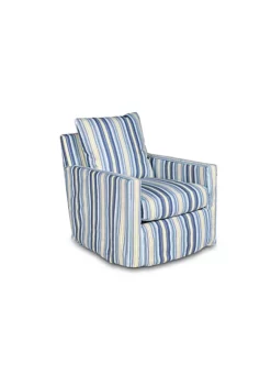 The Hamptons Collection 35" Seaside Beach Blue Striped Fabric Swivel Chair with Track Arm