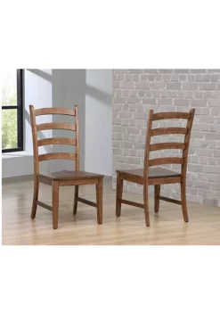 The Hamptons Collection Set of 2 Amish Brown Handcrafted Wooden Ladder Back Dining Side Chairs 42”