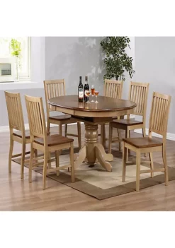 The Hamptons Collection Set of 2 Light Beige and Brown Slat Back Counter Height Barstool 44”