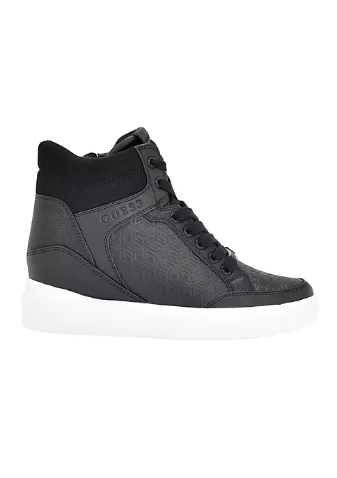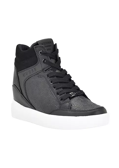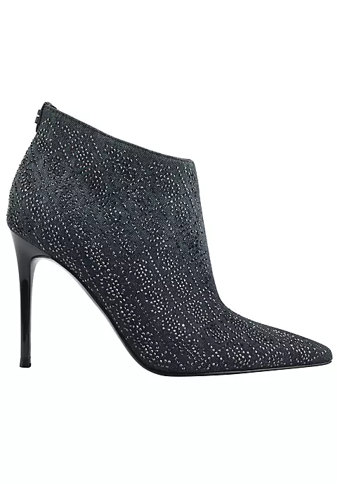 Grab all the attention this fall in the Fazzie dress bootie from GUESS. This showstopper features a taper toe and stiletto heel with embellished logo fabric upper