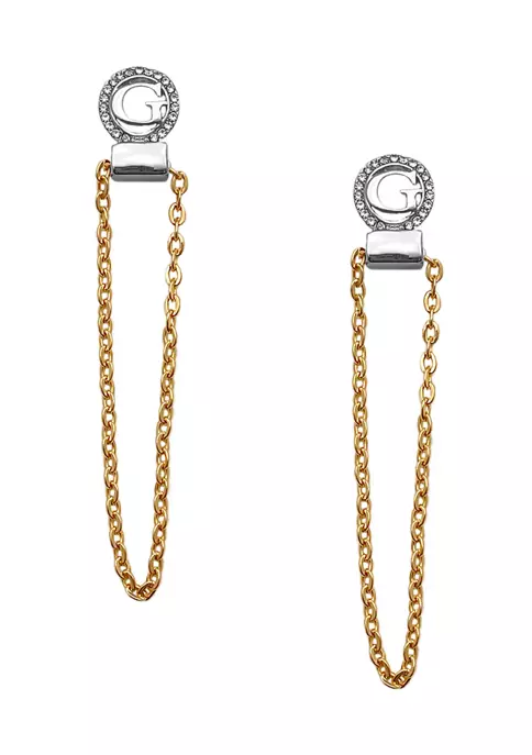 Elevate your look in these “G” logo GUESS linear earrings, designed with a post backing and gold-tone chain.