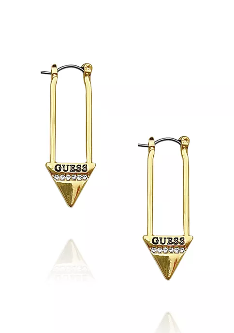 These hoop earrings from GUESS are unique, featuring an elongated hoop attached to a shimmering GUESS pendant. A member of the SO GUESS collection.