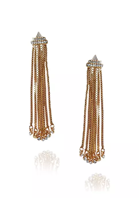 These fringe earrings from GUESS shimmer from top to bottom, comprising of several chains and glass stones. A member of the SO GUESS collection.