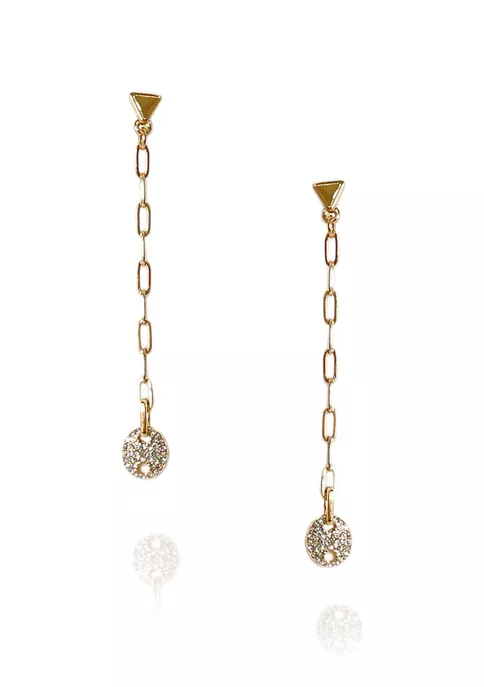 Sparkle in these linear earrings from GUESS. Glass stones line the hanging pendant. A part of the SO GUESS collection.