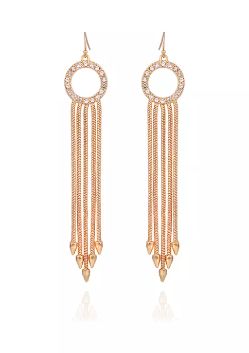These sophisticated linear earrings from GUESS feature pavé circles and multi-chain drops.
