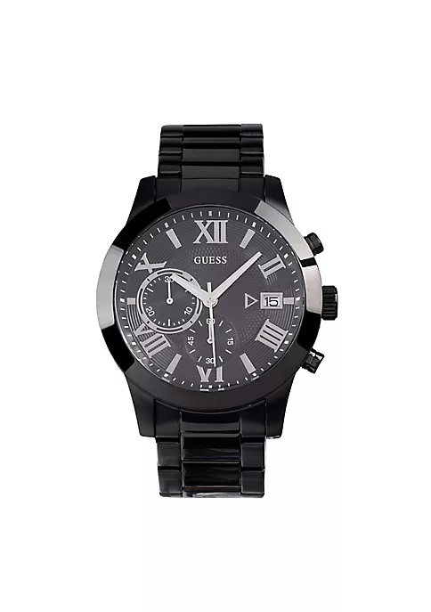 This Guess Atlas watch was crafted for the stylish gentleman. With a stainless-steel black band and stainless steel case, this watch is any man’s go-to accessory. It includes a water resistance of up to 50 meters / 165 feet / 5 atm and a durable mineral crystal. The stainless steel case is 13 mm thick. Be the man that sets the trends with the Atlas watch by Guess.