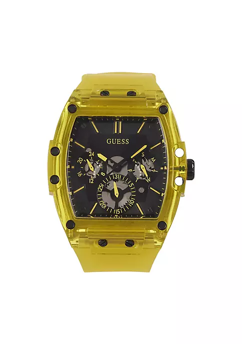 Stand out from the crowd with this GW0203G6 Yellow Silicone Watch from Guess. This sophisticated watch is expertly designed with high-quality materials to produce a beautiful watch that will pair well with any outfit. Put it on as a daily accessory to go to work or out with friends or take it out for special occasions like weddings and other celebrations. With a delicate face and an elegant band, this will soon become your new favorite watch. The intricate attention to detail makes this watch a unique piece. It is durable and trustworthy to ensure that it will last you a long time while staying in excellent condition. In addition, it will reliably keep time so you will have the confidence that it will always display an accurate time. Get one for yourself or buy one for a friend or family member for a birthday, holiday, or just because present. Even the person who is hardest to shop for will fall in love with this dependable watch. For a classic and stylish watch right at your fingertips, get this Guess watch. STYLISH: Turn heads wherever you go with this elegant and timeless watch that will effortlessly go with any outfit you pair with it. With a sleek design and delicate features, this eye-catching item will be a stand-out piece. DURABLE: This trustworthy was built to last as it is crafted from an incredibly high-quality material. It was created with your busy life in mind and will stay in excellent condition for a long time to come. WONDERFUL GIFT: This dependable watch makes for a lovely and thoughtful gift for any friend or family member. No matter the occasion, this gift is sure to make anyone smile when they open it. ACCURATE: With this trusted watch, you will always have a reliable time-keeping device literally at your fingertips. It will consistently display an accurate time so you will never be without the correct time again. VERSATILE: Always be put together with this watch that will be the perfect accessory to any outfit. Wear it to work, celebrations, or just while you are out and about for a convenient complete look.