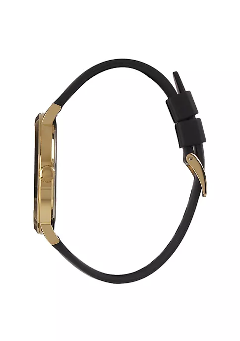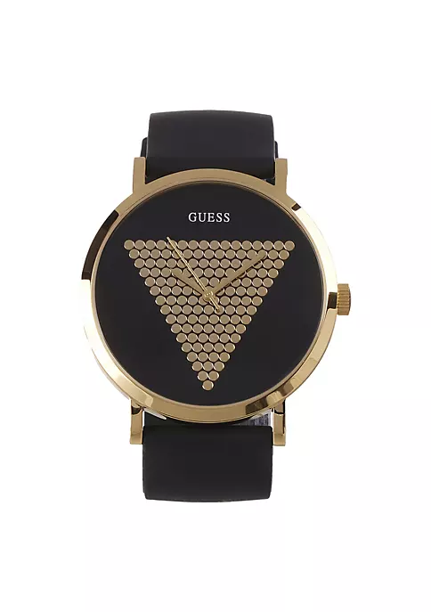 Stand out from the crowd with this Imprint W1161G1 Black and Gold Dial Watch from Guess. This sophisticated watch is expertly designed with high-quality materials to produce a beautiful watch that will pair well with any outfit. Put it on as a daily accessory to go to work or out with friends or take it out for special occasions like weddings and other celebrations. With a delicate face and an elegant band, this will soon become your new favorite watch. The intricate attention to detail makes this watch a unique piece. It is durable and trustworthy to ensure that it will last you a long time while staying in excellent condition. In addition, it will reliably keep time so you will have the confidence that it will always display an accurate time. Get one for yourself or buy one for a friend or family member for a birthday, holiday, or just because present. Even the person who is hardest to shop for will fall in love with this dependable watch. For a classic and stylish watch right at your fingertips, get this Guess watch. STYLISH: Turn heads wherever you go with this elegant and timeless watch that will effortlessly go with any outfit you pair with it. With a sleek design and delicate features, this eye-catching item will be a stand-out piece. DURABLE: This trustworthy was built to last as it is crafted from an incredibly high-quality material. It was created with your busy life in mind and will stay in excellent condition for a long time to come. WONDERFUL GIFT: This dependable watch makes for a lovely and thoughtful gift for any friend or family member. No matter the occasion, this gift is sure to make anyone smile when they open it. ACCURATE: With this trusted watch, you will always have a reliable time-keeping device literally at your fingertips. It will consistently display an accurate time so you will never be without the correct time again. VERSATILE: Always be put together with this watch that will be the perfect accessory to any outfit. Wear it to work, celebrations, or just while you are out and about for a convenient complete look.