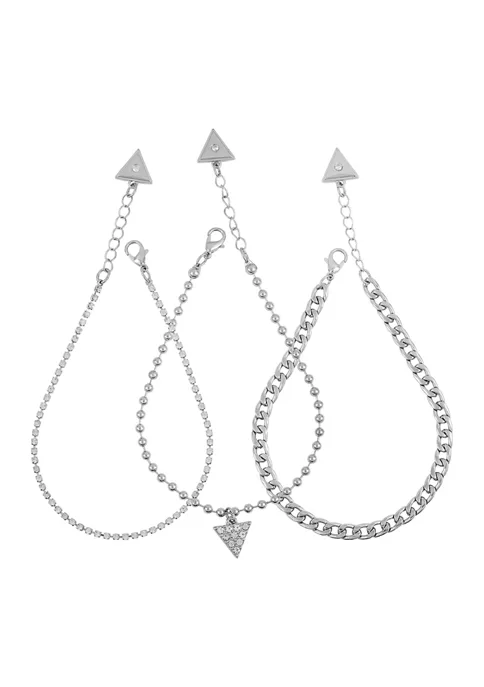 Take your pick of elegant styles with this anklet set from GUESS. It features a glass stone heart pendant, white style, and glass stone-studded chains. A member of the Anklet Item collection.