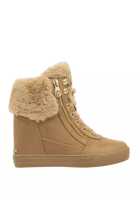 Flaunting a faux fur collar, these sneakers by Guess feature logo hardware and a lace-up front that is perfect for your cold-weather look.