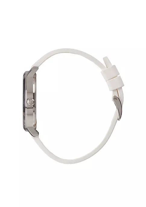 Stand out from the crowd with this Fitness W1210L1 Silver Dial Quartz Watch from Guess. This sophisticated watch is expertly designed with high-quality materials to produce a beautiful watch that will pair well with any outfit. Put it on as a daily accessory to go to work or out with friends or take it out for special occasions like weddings and other celebrations. With a delicate face and an elegant band, this will soon become your new favorite watch. The intricate attention to detail makes this watch a unique piece. It is durable and trustworthy to ensure that it will last you a long time while staying in excellent condition. In addition, it will reliably keep time so you will have the confidence that it will always display an accurate time. Get one for yourself or buy one for a friend or family member for a birthday, holiday, or just because present. Even the person who is hardest to shop for will fall in love with this dependable watch. For a classic and stylish watch right at your fingertips, get this Guess watch. STYLISH: Turn heads wherever you go with this elegant and timeless watch that will effortlessly go with any outfit you pair with it. With a sleek design and delicate features, this eye-catching item will be a stand-out piece. DURABLE: This trustworthy was built to last as it is crafted from an incredibly high-quality material. It was created with your busy life in mind and will stay in excellent condition for a long time to come. WONDERFUL GIFT: This dependable watch makes for a lovely and thoughtful gift for any friend or family member. No matter the occasion, this gift is sure to make anyone smile when they open it. ACCURATE: With this trusted watch, you will always have a reliable time-keeping device literally at your fingertips. It will consistently display an accurate time so you will never be without the correct time again. VERSATILE: Always be put together with this watch that will be the perfect accessory to any outfit. Wear it to work, celebrations, or just while you are out and about for a convenient complete look.