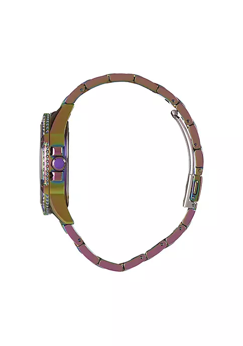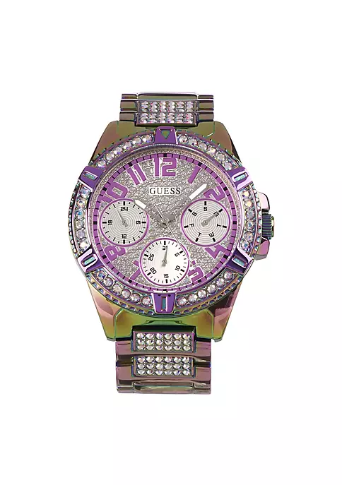 Stand out from the crowd with this GW0044L1 Purple Iridescent Stainless-Steel Watch from Guess. This sophisticated watch is expertly designed with high-quality materials to produce a beautiful watch that will pair well with any outfit. Put it on as a daily accessory to go to work or out with friends or take it out for special occasions like weddings and other celebrations. With a delicate face and an elegant band, this will soon become your new favorite watch. The intricate attention to detail makes this watch a unique piece. It is durable and trustworthy to ensure that it will last you a long time while staying in excellent condition. In addition, it will reliably keep time so you will have the confidence that it will always display an accurate time. Get one for yourself or buy one for a friend or family member for a birthday, holiday, or just because present. Even the person who is hardest to shop for will fall in love with this dependable watch. For a classic and stylish watch right at your fingertips, get this Guess watch. STYLISH: Turn heads wherever you go with this elegant and timeless watch that will effortlessly go with any outfit you pair with it. With a sleek design and delicate features, this eye-catching item will be a stand-out piece. DURABLE: This trustworthy was built to last as it is crafted from an incredibly high-quality material. It was created with your busy life in mind and will stay in excellent condition for a long time to come. WONDERFUL GIFT: This dependable watch makes for a lovely and thoughtful gift for any friend or family member. No matter the occasion, this gift is sure to make anyone smile when they open it. ACCURATE: With this trusted watch, you will always have a reliable time-keeping device literally at your fingertips. It will consistently display an accurate time so you will never be without the correct time again. VERSATILE: Always be put together with this watch that will be the perfect accessory to any outfit. Wear it to work, celebrations, or just while you are out and about for a convenient complete look.