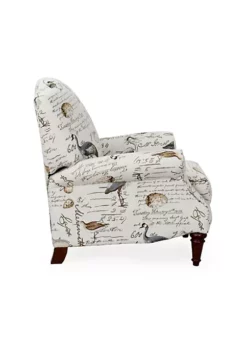 The Hamptons Collection 36” Off-White and Gray Bird Script Fabric Slipcovered Swivel Rocking Chair
