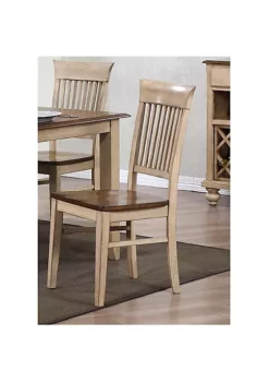 The Hamptons Collection Set of 2 Light Brown Handcrafted Wooden Slat Back Dining Chairs 38”