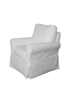 This comfortable slip covered chair will provide a stylish accent to any room. Featuring slip covered track arms 1.8 density foam seat cushions wrapped in Dacron batting double stitch slip covers and removable leg protector. This chair is made of fabric and polyester. Perfect for additional seating or can be placed in front of a sofa to prop your feet up after an exhausting day at work.