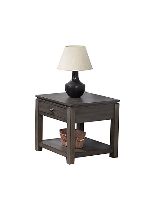 Add this end table that will meet all of your needs for displaying and holding your common living room items. It features a crafted wood that is protected with sealer and lacquer topcoat. It provides a rustic look that’s sure to tie any trendy room’s presentation together. Offering up much style this end table will complete your indoor living space.