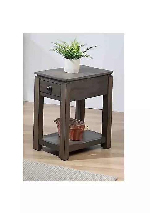 Add this end table that will meet all of your needs for displaying and holding your common living room items. It features a crafted wood that is protected with sealer and lacquer topcoat. It provides a rustic look that’s sure to tie any trendy room’s presentation together. Offering up much style this end table will complete your indoor living space.