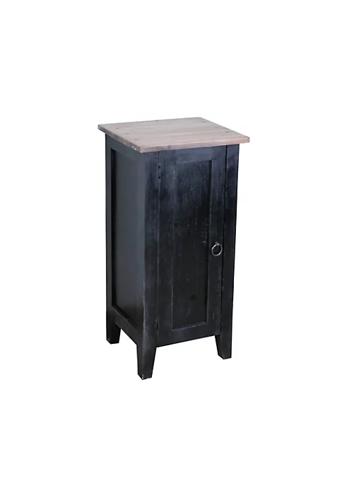 Give your home a healthy dose of charm with this cottage. The distressed hand-applied finish gives each piece the look of a well-loved antique handcrafted with two sturdy shelves behind an authentic panel door. This will make a great addition to your home decor.
