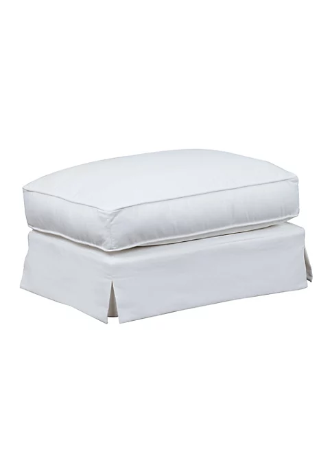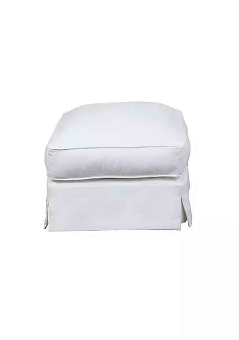 Make your guests feel spellbound with the addition of this beautiful slipcovered ottoman to your living room. This sturdy ottoman can work as an extra seat hold a snack tray for drinks and magazines or support your tired feet. Removable slipcover gives this footstool ottoman a welcoming charm. Slipcovers can be easily removed from all pieces for cleaning.