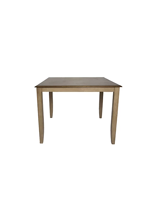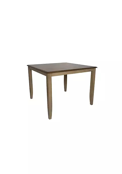Add a warm and cozy vibe to your dining space. This distressed brown pub table adds cozy country charm to your dining space; made from solid hand-crafted hardwood with cafe height. Just add upholstered chairs with nailheads for a more formal setting.