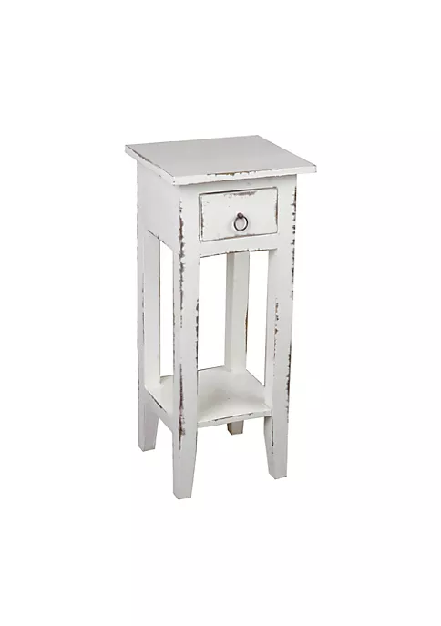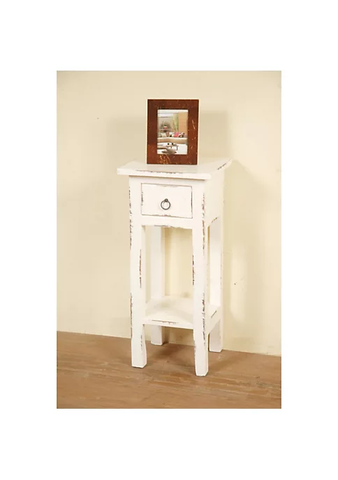 This cottage chic end table is a stylish stage for a striking vase or your favorite lamp. This two-tiered distressed finish side table will add flair to any tiny space you have to spare. Grab home this perfect sofa or bedside accent and beautify your abode.